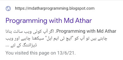 ۱ ) سرچ انجن میں کوئی چیز تلاش کرنے کے بعد user کے سامنے جو پیج نتیجہ کے طور پر ظاہر ہوتے ہیں، ان پیجوں میں جو hyperlink ہوتے ہیں، وہ title ٹیگ کے درمیان لکھے جاتے ہیں۔ نیچے کی تصویر سے سمجھئے: